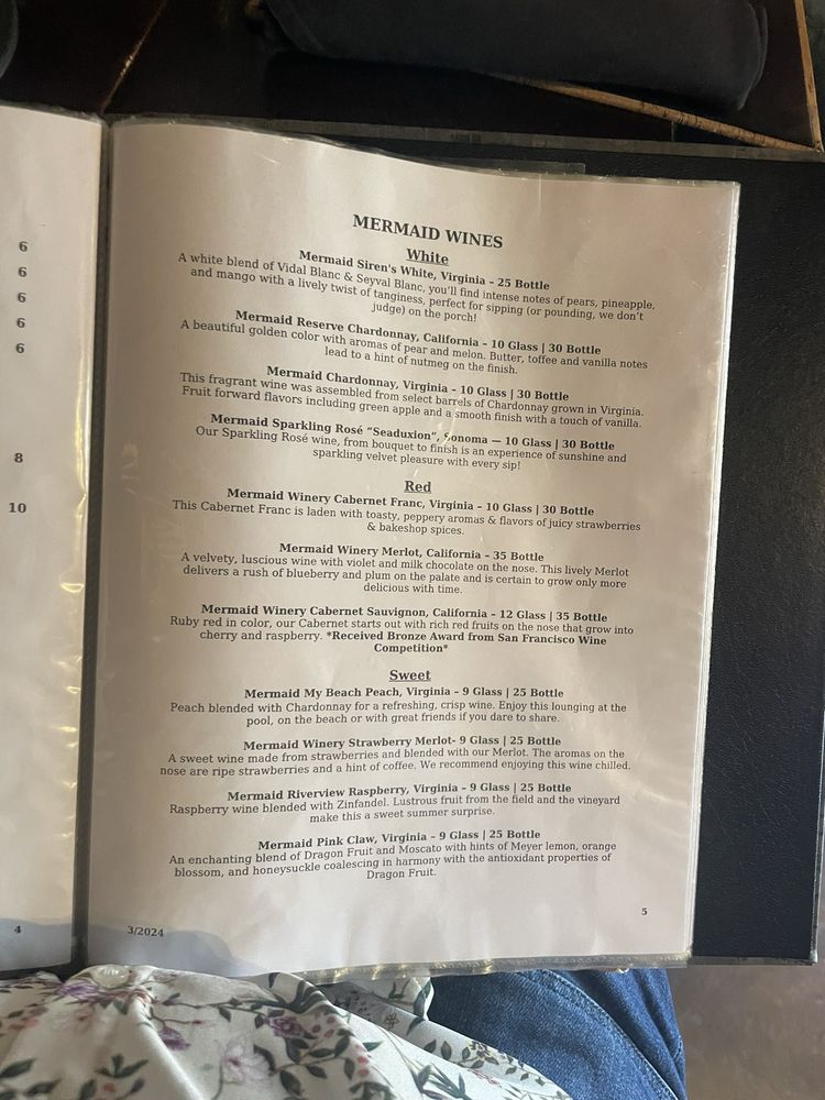 Mermaid Winery, located in Virginia Beach, VA, is a top-notch winery offering a New American cuisine experience. This classy establishment caters to a variety of preferences, with many vegetarian options available. The amenities are plentiful, including outdoor seating, a full bar, and free Wi-Fi. The venue is wheelchair accessible and even provides an ADA-compliant restroom. The menu is diverse, with happy hour specials and catering services offered. Guests can enjoy the pleasant ambiance while tasting delicious dishes, and the attentive waitstaff ensures a pleasant dining experience. Don't miss out on trying Mermaid Winery's delectable offerings and exquisite wines. Call (757) 233-4155 to make a reservation!